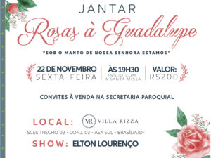 VEM AI! Nosso tão esperado JANTAR Rosas à Guadalupe está chegando e você é nosso convidado mais que especial! Adquira seu convite e venha apreciar conosco uma noite maravilhosa! Convites infantis R$ 100.