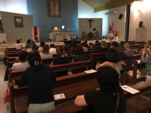 Qual é a mãe que não reza pelo seu filho? No último dia 03 de fevereiro, foi realizada na paróquia Nossa Senhora de Guadalupe o 1º Encontro de 2020 do Terço pelos Filhos. Várias mães pediram com muita fé a Nossa Senhora, que seus filhos tivessem um maravilhoso ano. O grupo faz parte do movimento Mães que Oram pelos Filhos da paróquia. Ao final do encontro o Pe. Marcelo Cecato conduziu a adoração ao Santíssimo Sacramento.