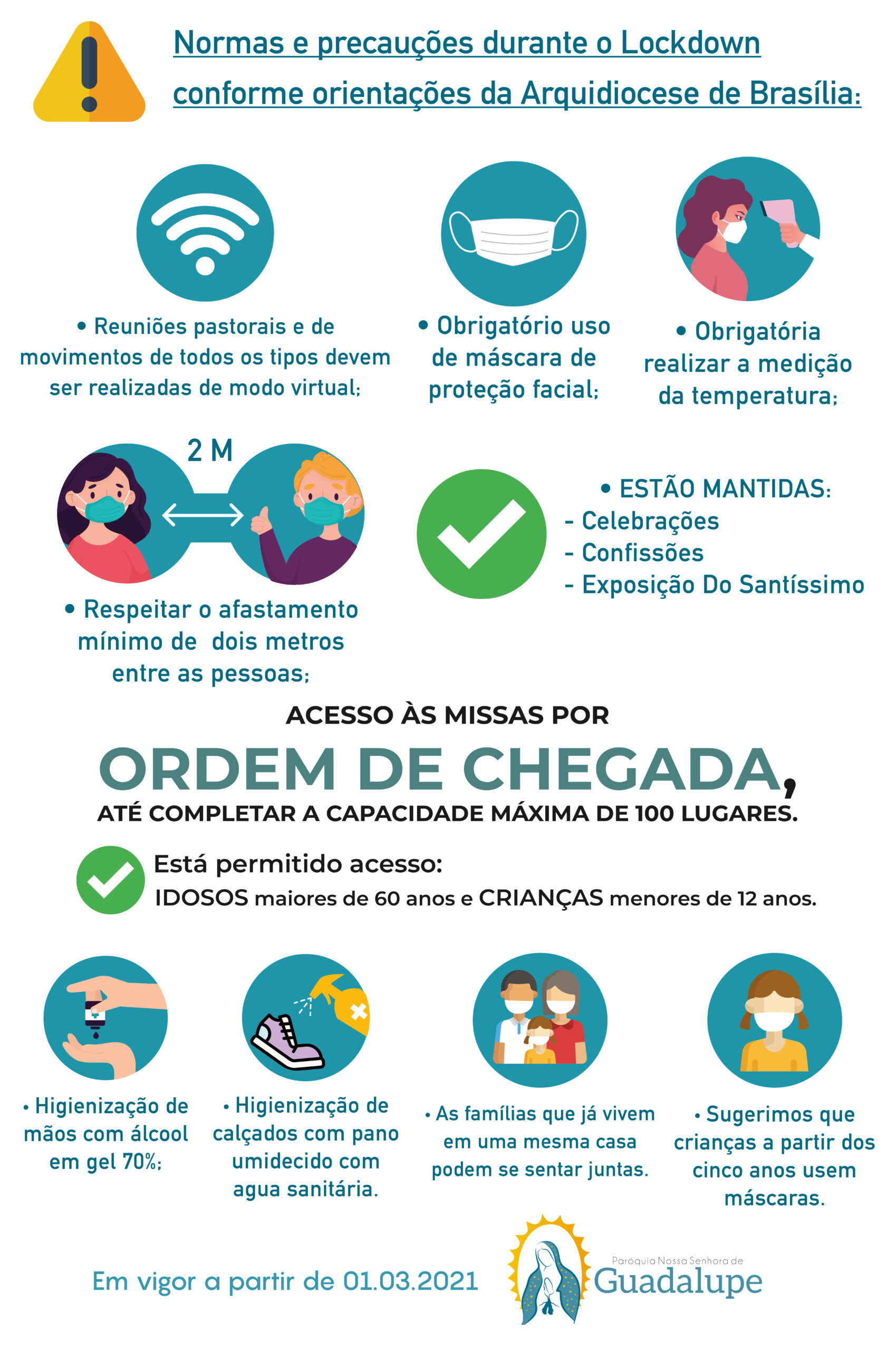 Normas e precauções durante o Lockdown conforme orientações da Arquidiocese de Brasília: Em vigor a partir de 01.03.