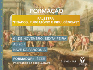 Para nos prepararmos bem para o dia de finados teremos uma palestra sobre “Finados: purgatório e indulgências” com nosso querido professor da Escola da Fé Jézer Júnior.